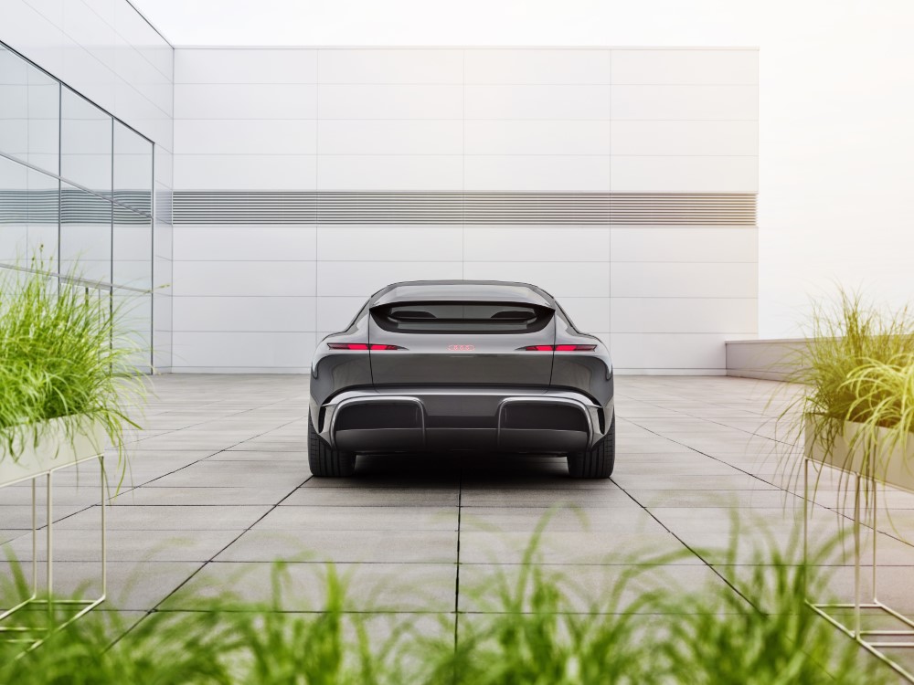 Pyöräkoteloiden muoto on pehmeä, mutta silti selkeästi erottuva – tyypillinen Audi. Kapea takaosa massiivisen C-pilarin takana on perinteisen virtaviivainen. Kattolinjan dynaamisesti kalteva kaari osoittaa grandspheren olevan osa Audi Sportback -perinnettä. Kaikki linjat ja pinnat näyttävät yhdistyvän luonnollisesti, muodostaen yhden monoliittisen kappaleen.