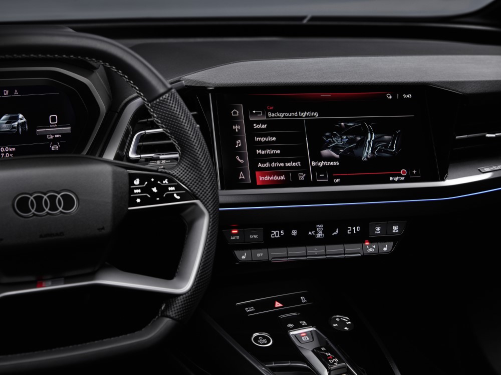 Audi Q4 e-tronin 10,1-tuumaisessa MMI-kosketusnäytössä on akustinen palaute ja 1540 x 720 pikselin resoluutio. MMI Radio Plus -järjestelmässä on 10,1-tuumainen MMI-kosketusnäyttö 1540 x 720 pikselin resoluutiolla ja sen kautta hallitaan sekä infotainment-järjestelmää että lukuisia mukavuustoimintoja.