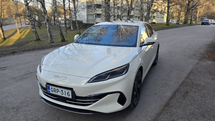 Autotoday:n koeajossa oli vuoden 2025 mallia oleva tuliterä lataushybridi BYD Seal 6 DM-i -versio.
