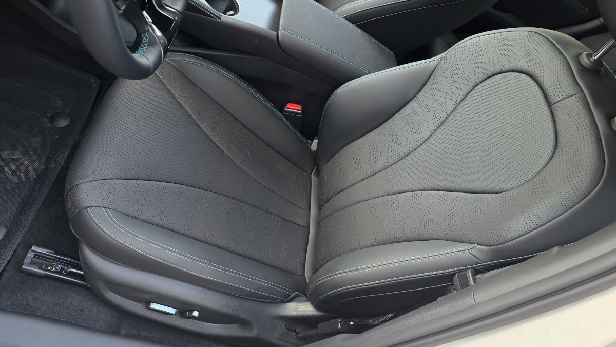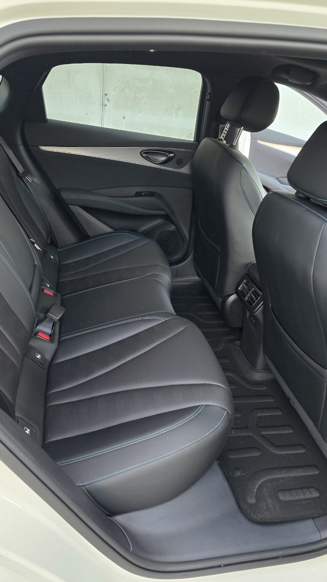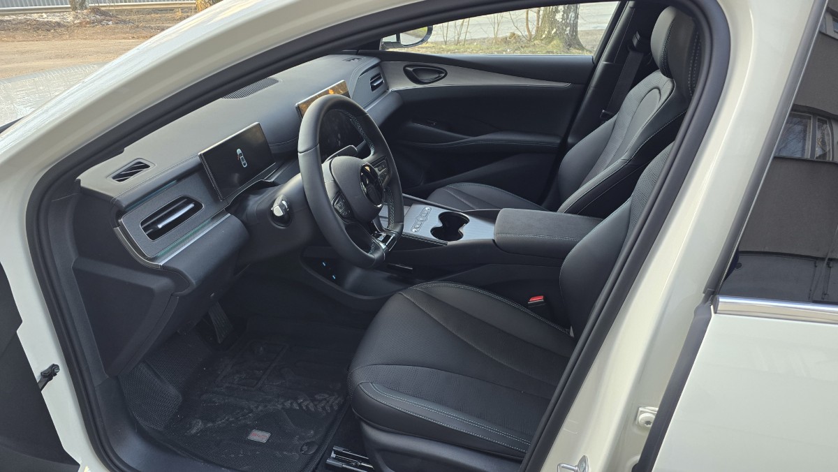 Koeajoauton sisätilat vastaavat myös varsin hyvin tämän kokoluokan mittoja. Etuistuimet ovat sähköisesti säätyviä ja istuimet antavat mukavan tuen. Niskatuki on kiinteästi penkissä kiinni. Tekonahka-verhoilu on siisti ja muistuttaa paljolti Teslaa.