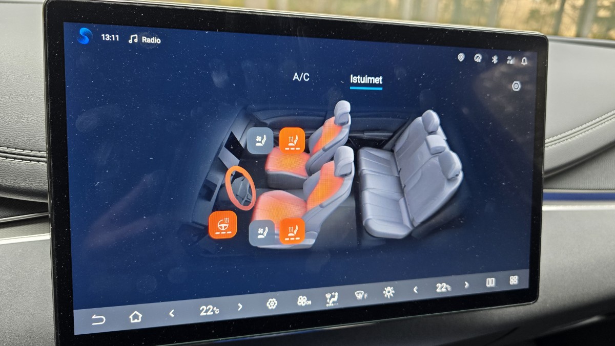 Auton lämmityksen säädöt vaativat valikoissa useita valintoja, jotka on aseteltava auton ollessa paikallaan. Ohjauspyörän lämmitys, etuistuimen lämmitys sekä jäähdytys tarjoavat eri portaissa vaihtoehtoja.