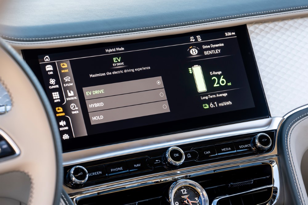 Uusi voimalinja yhdistää 2,9-litraisen V6-bensiinimoottorin edistyneeseen sähkömoottoriin. Yhdistelmä tuottaa yhteensä 544 hevosvoiman tehon ja 750 Nm vääntömomentin – tehoa on 95 hevosvoimaa enemmän kuin Bentayga Hybridissä.