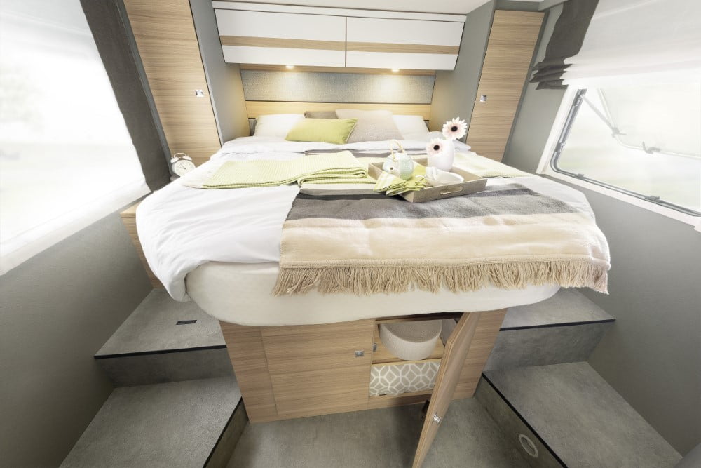 Kaikkiin malleihin saa lisävarusteena mainitun nostovuoteen kahdelle hengelle ja kaikki ovat rekisteröitävissä 4:lle B-ajokorttiluokkaan (alle 3500 kg).
