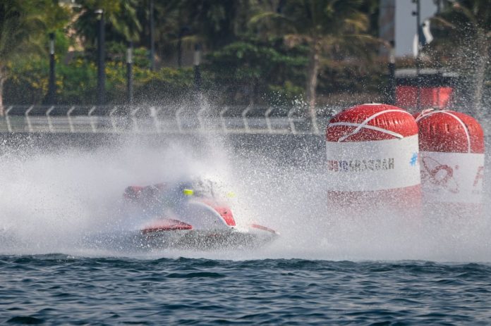 Sami Seliö joutui keskeyttämään rataveneiden F1-sarjan kauden toiseksi viimeisen osakilpailun kaatoon Saudi-Arabian Jeddahissa. Seliön vene lensi ohitusyrityksen päätteeksi edellä ajaneen vesisuihkusta näyttävästi ympäri.
