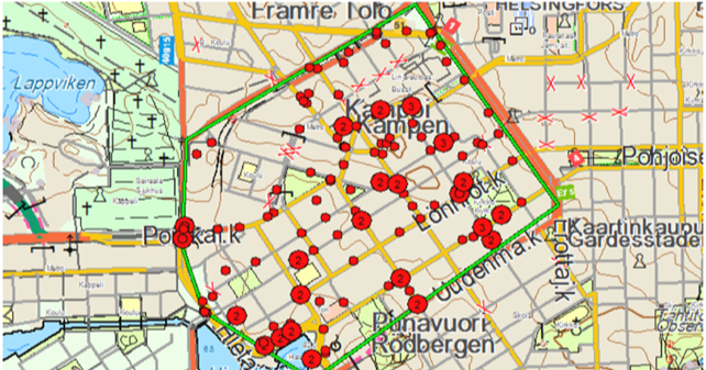 Lisäksi valvontaa kohdennetaan oheisen liikenneonnettomuuskartan mukaisesti niihin yksittäisiin pisteisiin, joihin onnettomuudet ovat keskittyneet.