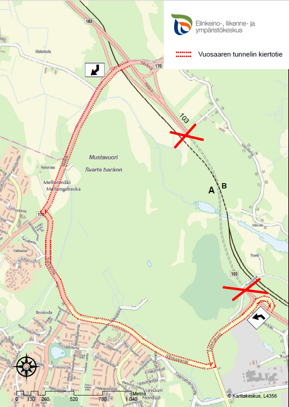 Tunnelin sulun aikana liikenne ohjataan Itäväylän, Kallvikintien, Niinisaarentien ja Satamankaaren kautta.