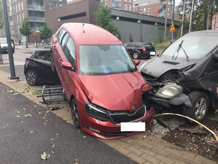 Pakettiauto oli törmännyt Ruusukvartsinkadulla kolmeen tienvarressa pysäköitynä olleeseen henkilöautoon siten, että kaikkiin ajoneuvoihin tuli huomattavia pelti- ja maalivaurioita.