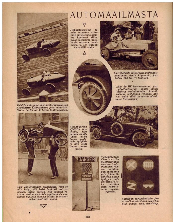 Suomen Kuvalehdessä oli vuonna 1922 numerossa 9 mielenkiintoinen sivu autoilusta.