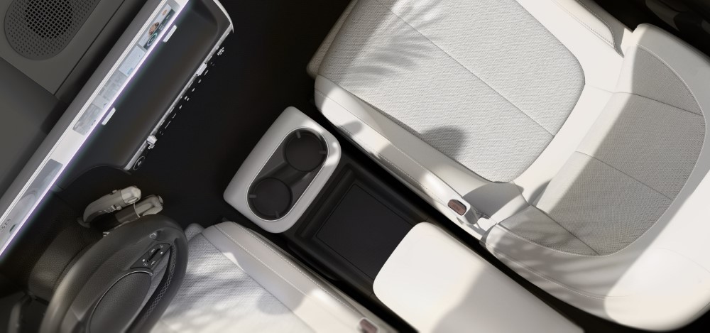 Ioniq 5 etupenkki ja keskikonsoli takimmaisessa asennossa. Kuva: Hyundai.