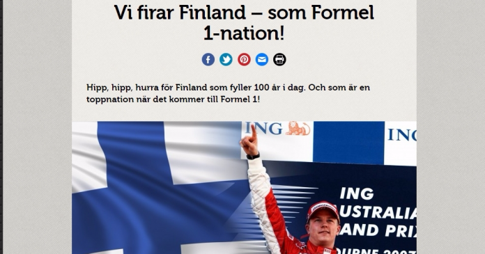 Ruotsissa ilmestyvä Teknikens Värld -lehti on tänään laittanut kotisivunsa pääuutiseksi Suomen F1-menestyksen.