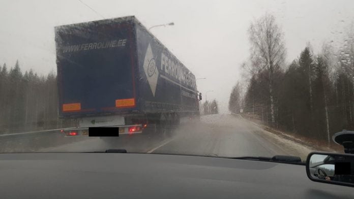 Liitteenä liikenneopettajan ottama kuva muutama päivä sitten, kun rekka ohitti kaksi ajoneuvoa kerralla ylämäkeen huonolla kelillä, piittaamatta ohituskiellosta kertovasta sulkuviivasta.