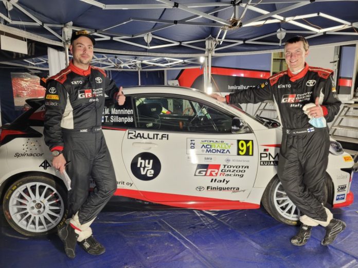 Manninen ja Sillanpää kilpailivat Monzan MM-rallin yhteydessä GR Yaris Rally Cupin pisteistä. Suomalaispari oli menettänyt edellisessä osakilpailussa mahdollisuudet henkilökohtaisiin mestaruuksiin, mutta Monzassa oli vielä panoksena tiimien mestaruus.