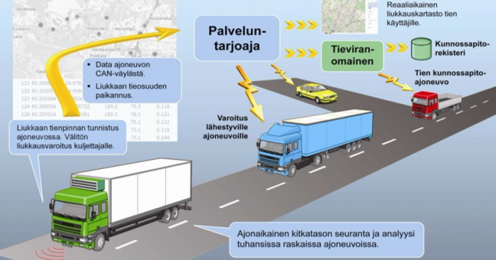 Mukana on linja-autoja sekä rekka- ja kuorma-autoja, joihin asennettava ohjelmisto tuottaa reaaliaikaista liukkausdataa kuljettajien, liikennöitsijöiden ja muiden tienkäyttäjien hyödyksi.