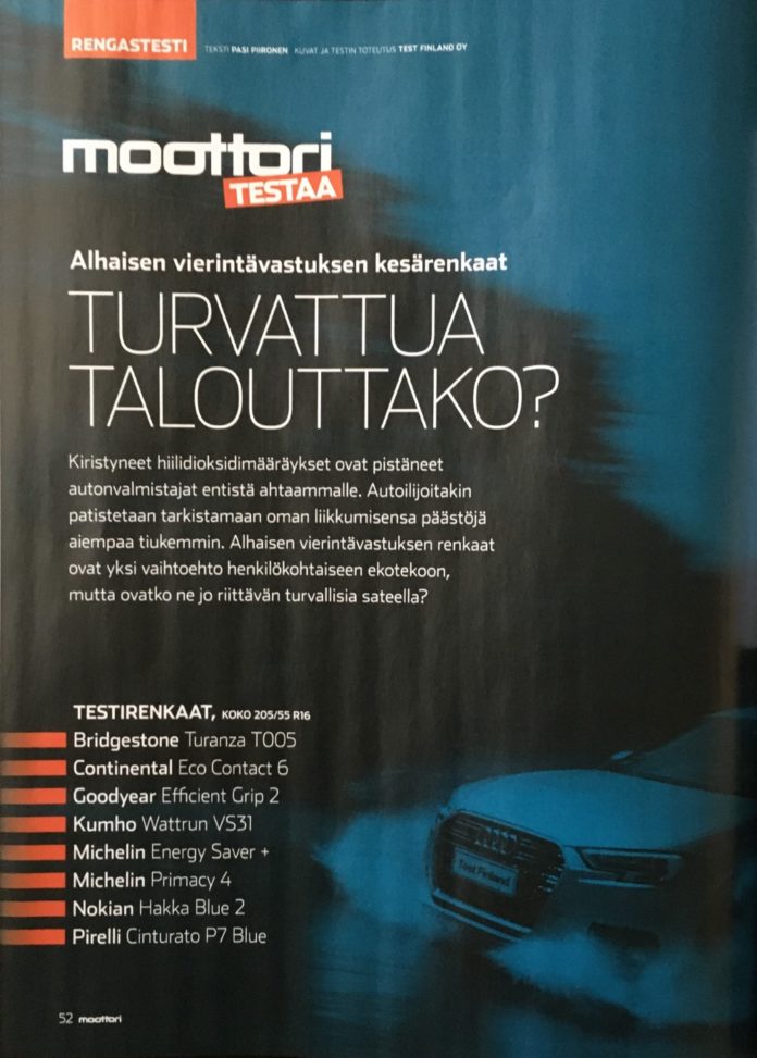 Moottori-lehdessä julkaistiin alhaisen vierintävastuksen kesärengastesti. Testissä oli mukana kaikkiaan kahdeksan kesärengasta.