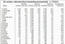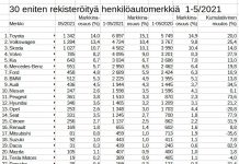 Tänä vuonna on alkuvuonna rekisteröity selvästi enemmän henkilöautoja kuin vuosi sitten. Kasvu ei kuitenkaan ole tuntunut kaikissa merkeissä.Kolmestakymmenestä suosituimmasta merkistä kuudella merkillä on mennyt...