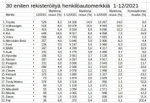 Rekisteröinti: Toyota oli viime vuonna selvästi Suomen suosituin henkilöautomerkki