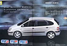 Vuonna 2000 markkinoille oli tullut uusi Renault Scénic. Auto markkinoitiin oheisella mainoksella."Menestys jo ensiesittelystä lähtien. TM 16/99 tila-autovertailussa täydet viisi tähteä. Tuulilasi 12/99: "Scenic...