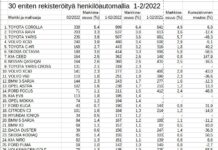 Jato Dynamics on julkaissut helmikuun autojen Euroopan kauppatilaston.Tilastoa on julkaistu erikseen kaikista henkilöautoista, lataushybrideistä ja sähköautoista. Oheisissa taulukoissa on kunkin ryhmän kymmenen parasta. Tilastoon...
