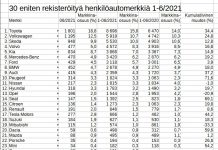 Toyota on aivan selvästi suomalaisten suosikkimerkki. Alkuvuoden aikana markkinaosuus on 15,8 prosenttia, mutta kesäkuussa se pompahti peräti lukemaan 18,8 prosenttia.Toyota-autoja on saatu alkuvuoden aikana...