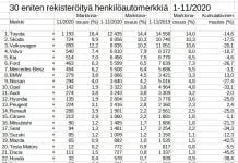 Toyota Corollaa on marraskuun loppuun mennessä rekisteröity 5047 autoa. Se on ainoa malli, joka on päässyt edes lähelle 5000 autoa.Toisena oleva Škoda Octavia on...