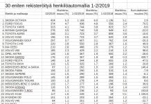 Alkuvuoden suosituin henkilöautomalli on perinteitä noudattaen Škoda Octavia. Toiseksi suosituin on kuitenkin ehkä hieman yllättäen Ford Focus.Näistä kahdesta mallista vain Octavia on ylittänyt tuhannen...