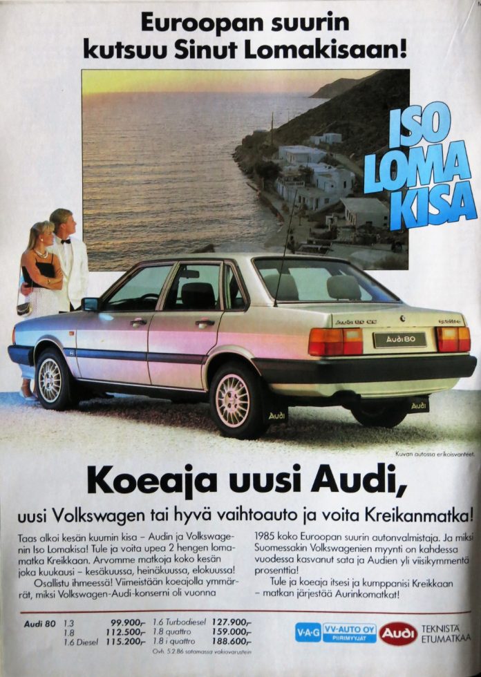 Vuonna 1986 Audi markkinoi autojaan koeajoarpajaisilla.