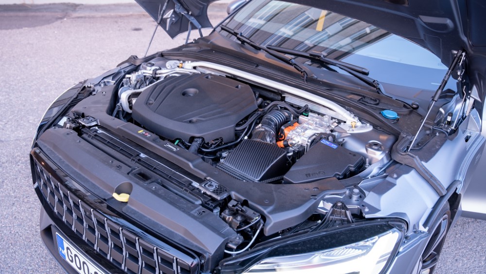 Taka-akselin sähkömoottoreiden lisäksi etuakselille voimaa syöttää kaksilitrainen mekaanisesti ja turboahdettu bensiinimoottori.