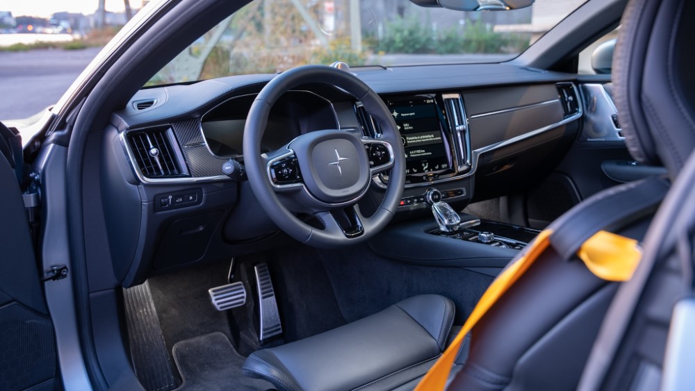Nahkaa ja hiilikuitua on käytetty säästelemättä, ja tyylikkään hillitty tunnelmavalaistus herättää ohjaamon henkiin illan pimetessä. Vaihdekeppi on Orreforssin kristallinuppi Polestarin logolla varustettuna. Yksityiskohdat on viimeistelty.