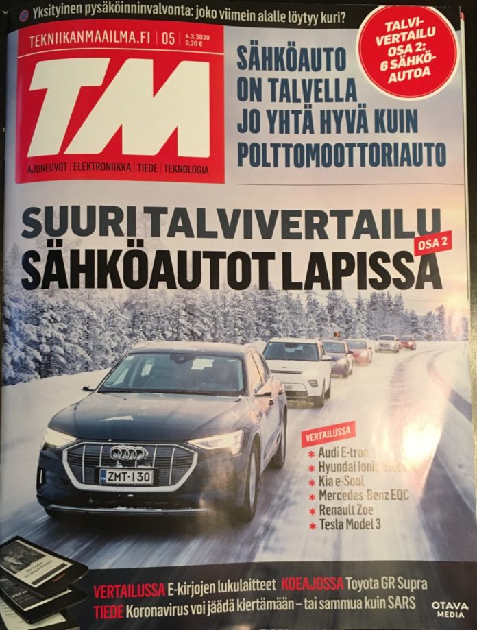 Tekniikan Maailma on numerossa 5/2020 julkaissut jatkoa talviautovertailuun. Nyt verrattiin kuusi täyssähköautoa.