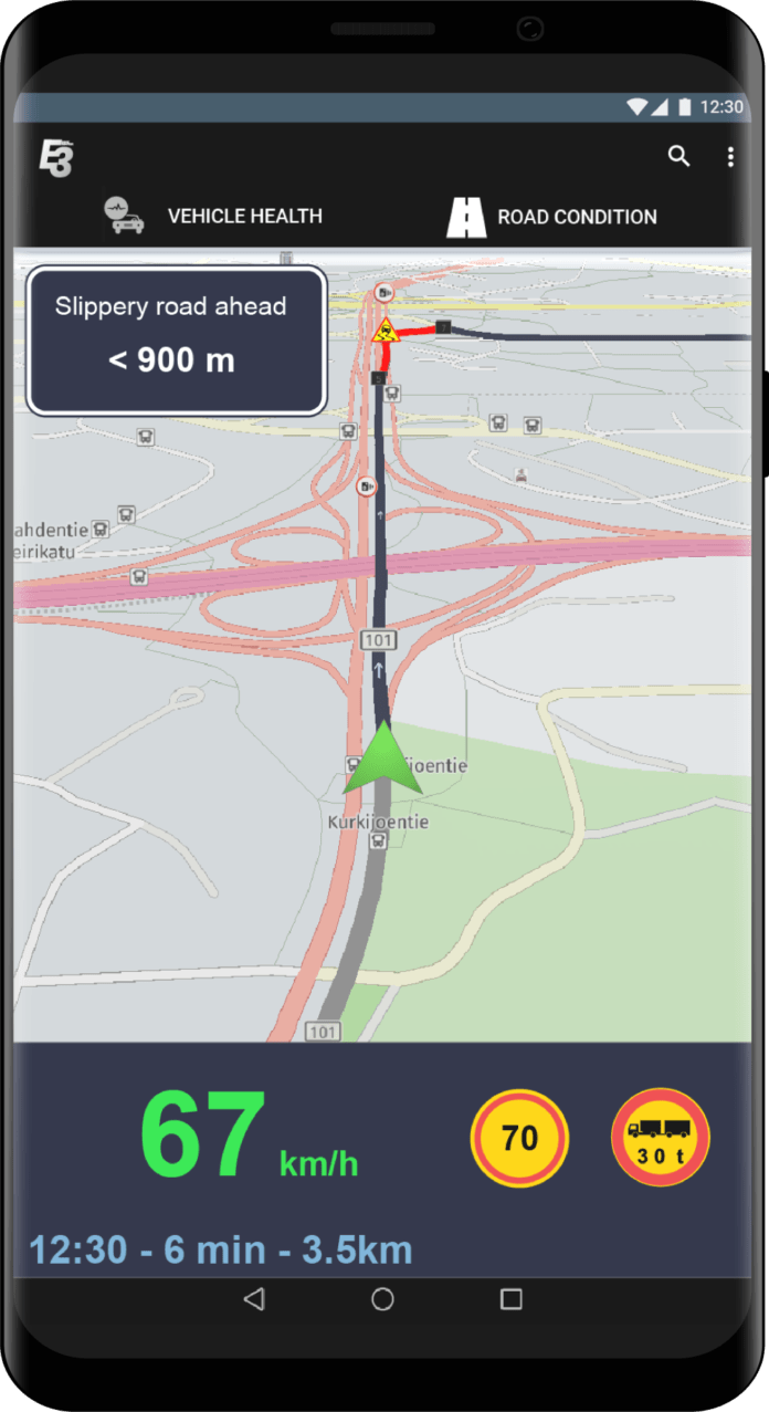 E3Sense -liukkaudentunnistusominaisuus kerää paikannettua liukkaustietoa, joka lähetetään pilvipalveluun ja on tämän kautta kaikkien E3Sense-käyttäjien ulottuvilla reaaliaikaisesti.