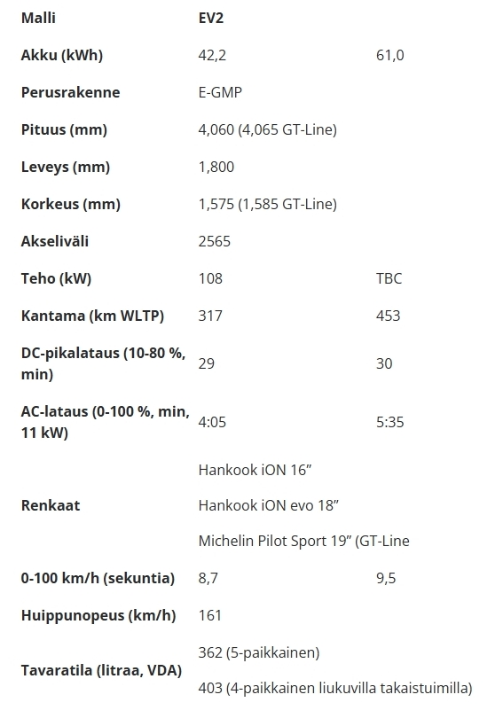 Kolme voimalinjavaihtoehtoa ja jopa yli 600 kilometrin WLTP-toimintamatka