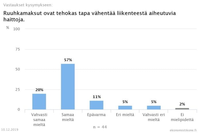 77 prosenttia taloustieteilijöistä katsoo, että ruuhkamaksut ovat tehokas tapa vähentää liikenteestä aiheutuvia haittoja.