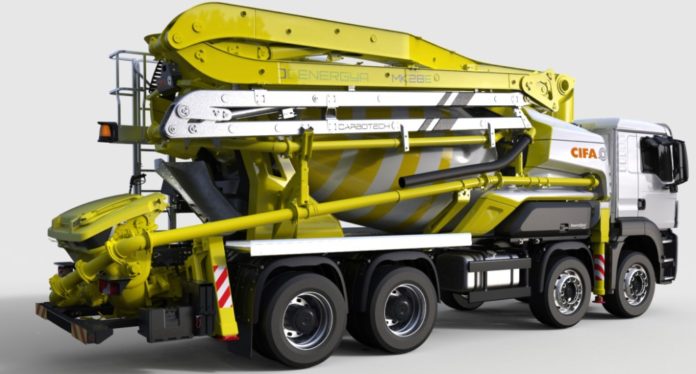 Perinteinen hydraulijärjestelmä on korvattu elektronisella vaihteistolla, joka mahdollistaa rummun pyörittämisen, puomin liikuttelun, tukijalkojen ajamisen sekä pumppausyksikön käytön alustan perinteisen polttomoottorin ollessa sammutettuna.
