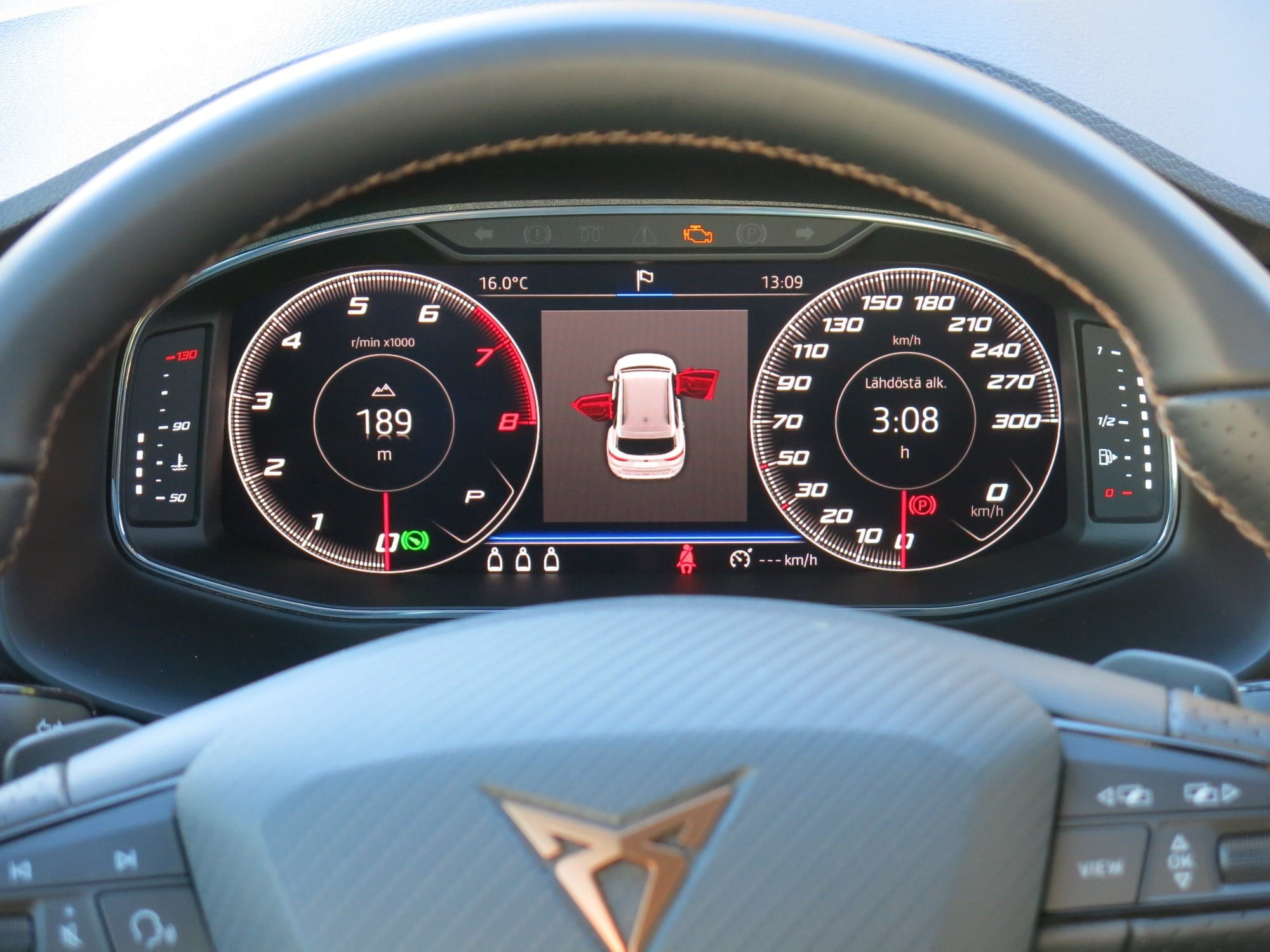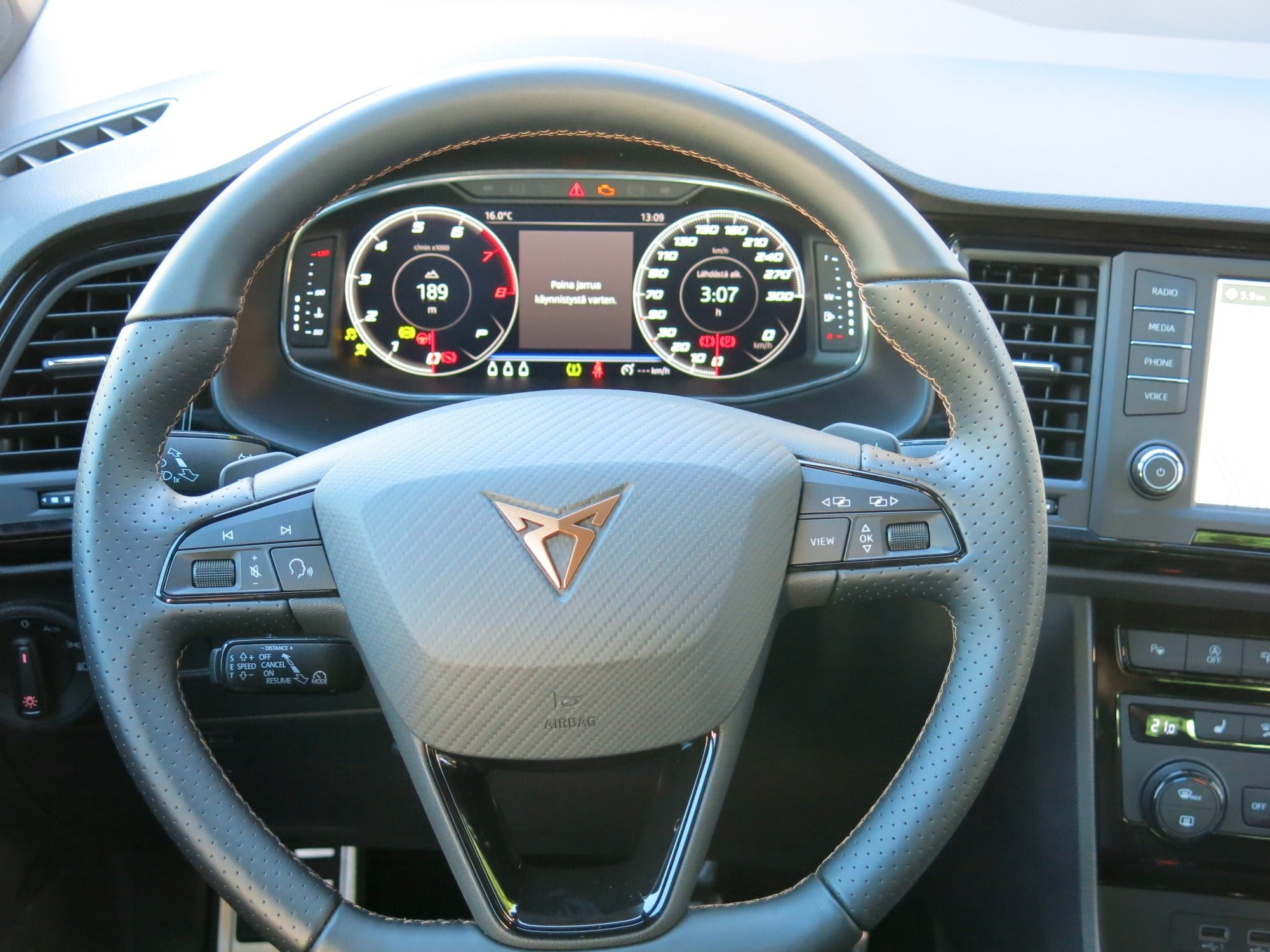 Digitaalimittariston urheilunäyttö on kehitetty erityisesti Cupra Atecaa varten ja kierroslukumittari näkyy siinä korostuneesti ja selkeästi.