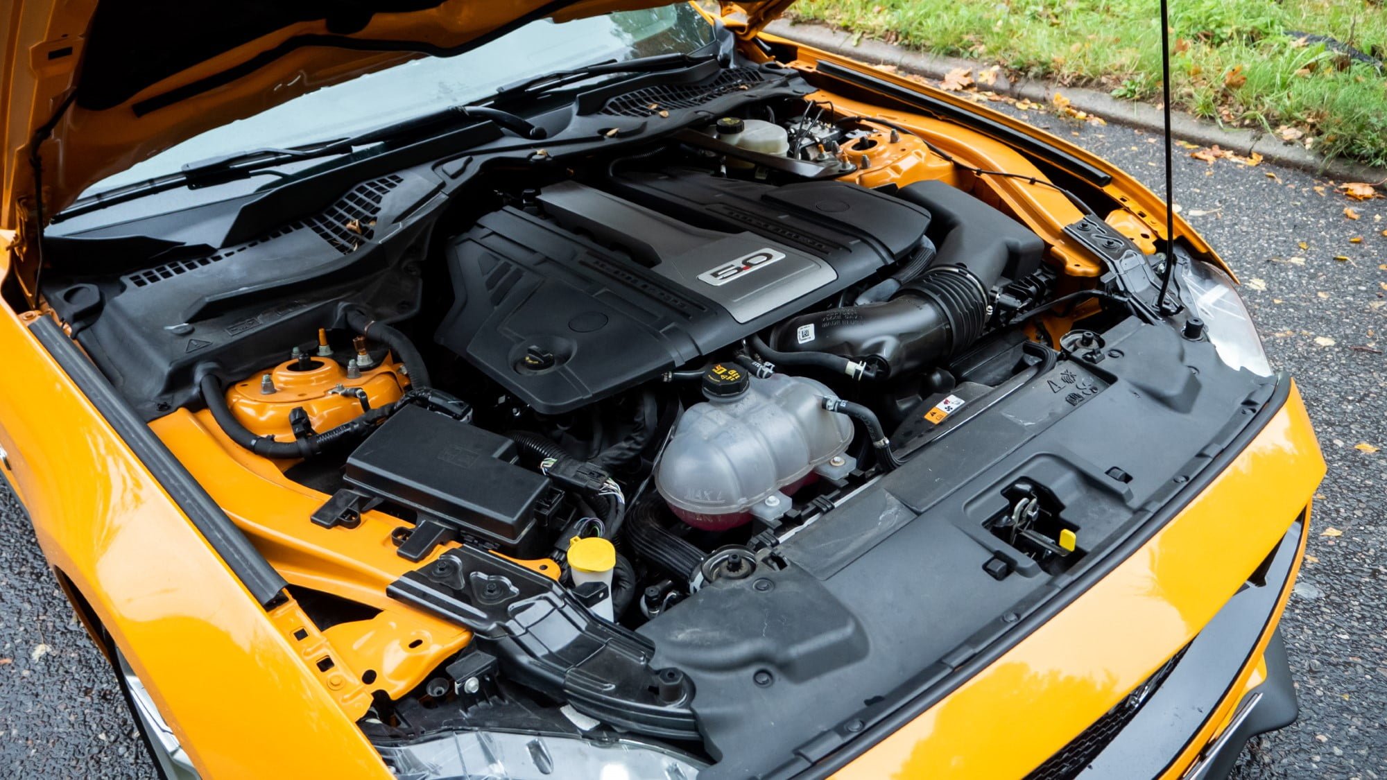 Tunne vs. järki: Nelisylinterisellä EcoBoost-moottorilla varustettuna Mustangia voisi harkita järjellä. Tällä suurella V8-moottorilla Mustang menee suoraan tunteisiin. Mustangin kaltaisessa muskeliautossa suuri V8-moottori on ehkä vielä jollain tapaa hyväksyttävää ja perusteltavissa.