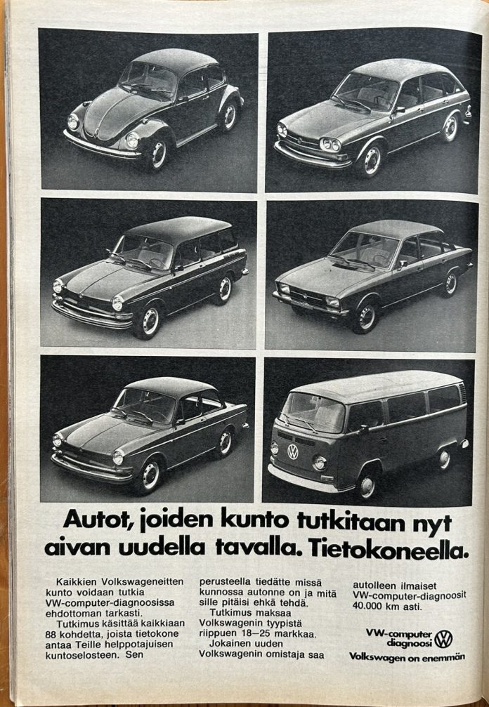 Vuonna 1972 Volkswagen mainosti käyttävänsä tietokoneita autojen kunnon tutkimisessa.