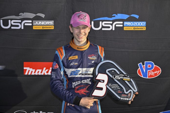 Turkulainen Vilho Aatola, 17, avasi USF Juniors -kautensa vakuuttavasti nousemalla kolmanneksi Homestead-Miami Speedwayllä ajetussa avauskilpailussa. Lähtöruudusta 13 startannut Aatola teki tasaisen, nousujohteisen ja virheettömän kilpailun, joka palkittiin podiumsijoituksella.