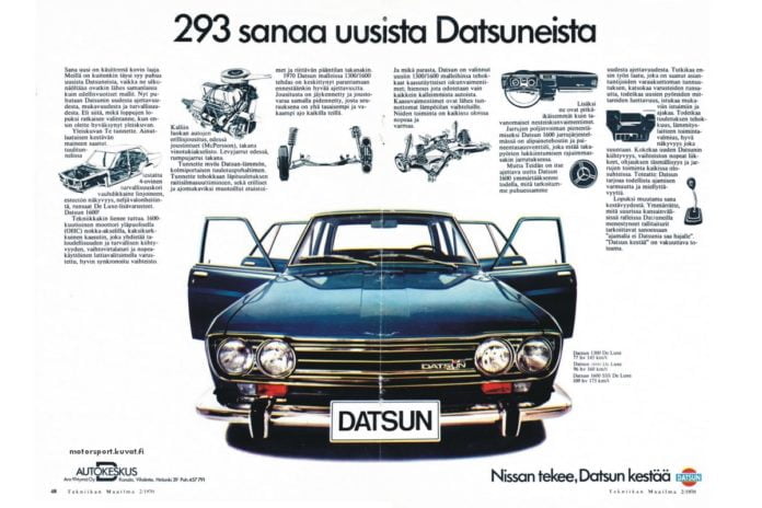 Kun aikaisempi malli oli Teekkareiden rajuissa koitoksissa osoittanut kestävyytensä, ja uusi malli, keskikokoluokkaan sijoittunut oli pärjännyt hyvin kansainvälisissä ralleissa, saattoivat kuskit todeta: ”Ajamalla ei Datsunia saa hajalle.”