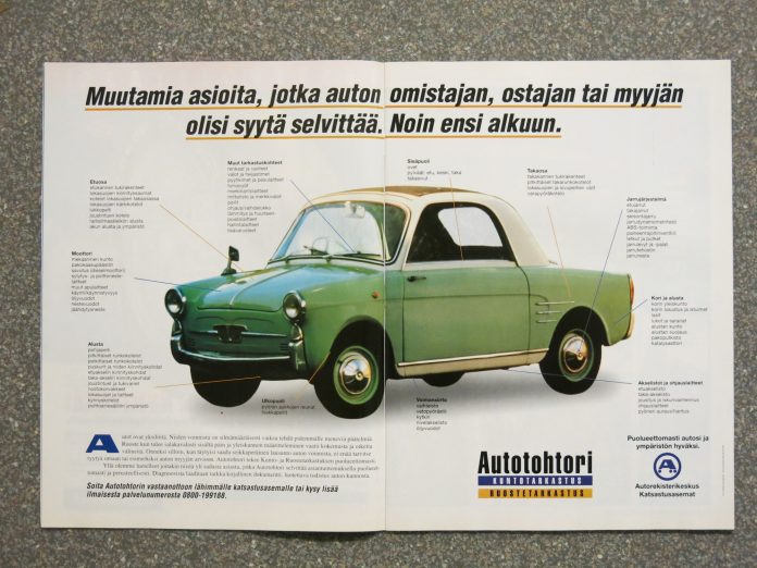 Mainos on otsikoitu ”Muutamia asioita, jotka auton omistajan, ostajan tai myyjän olisi syytä selvittää. Noin ensi alkuun.”