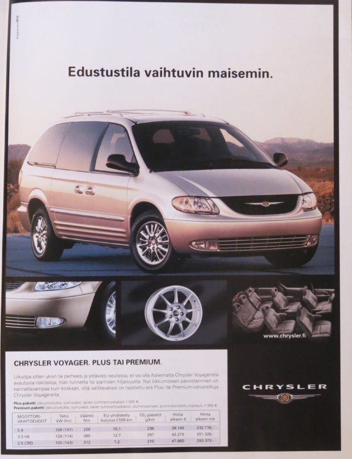 Vuosituhannen alussa Suomessa oli myynnissä Chrysler Voyager -tila-auto.