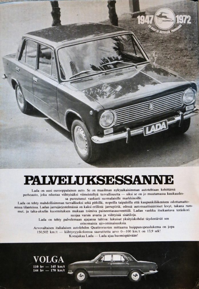 Vuonna 1972 Lada oli vielä tuore automerkki ja silloin sitä markkinoitiin tällaisella mainoksella.