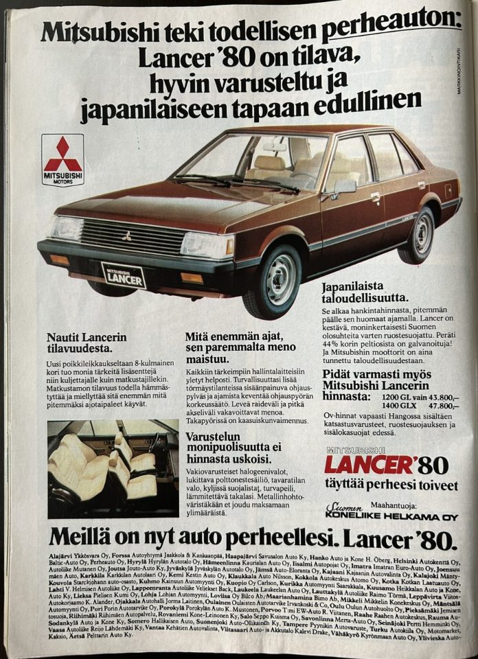 Päivän automainos: Mitsubishi teki todellisen perheauton: Lancer ’80 on tilava, hyvin varusteltu ja japanilaiseen tapaan edullinen
