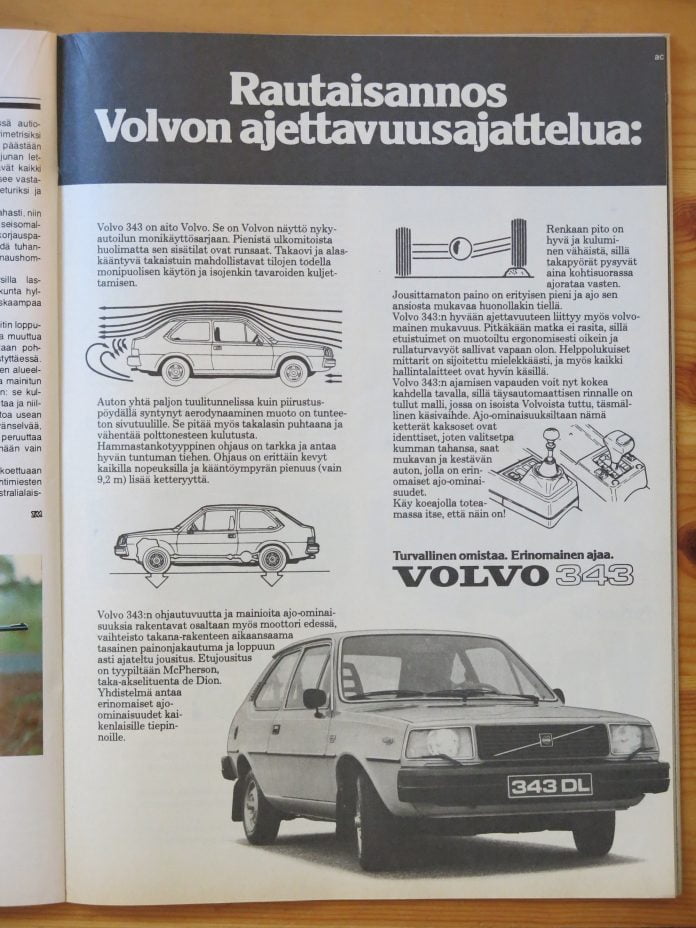 Vuonna 1978 Volvo halusi markkinoinnissaan vahvistaa, että Volvo 343 oli aito Volvo, vaikka se tuli Volvon ostaman DAFin tehtaalta.