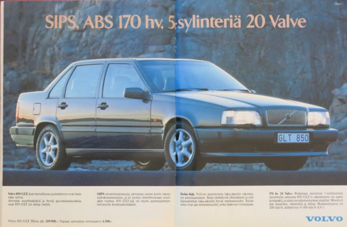 SIPS, ABS 170 hv, 5-sylinteriä 20 Valve. Näillä sanoilla Volvo markkinoi 1992 Volvo 850 GLT-mallia.
