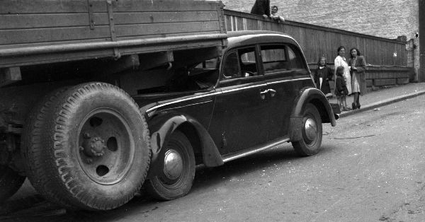 Kesäkuussa 1947 henkilöauto oli ajautunut kuorma-auton lavan alle Tampereen Hämeenkadulla.