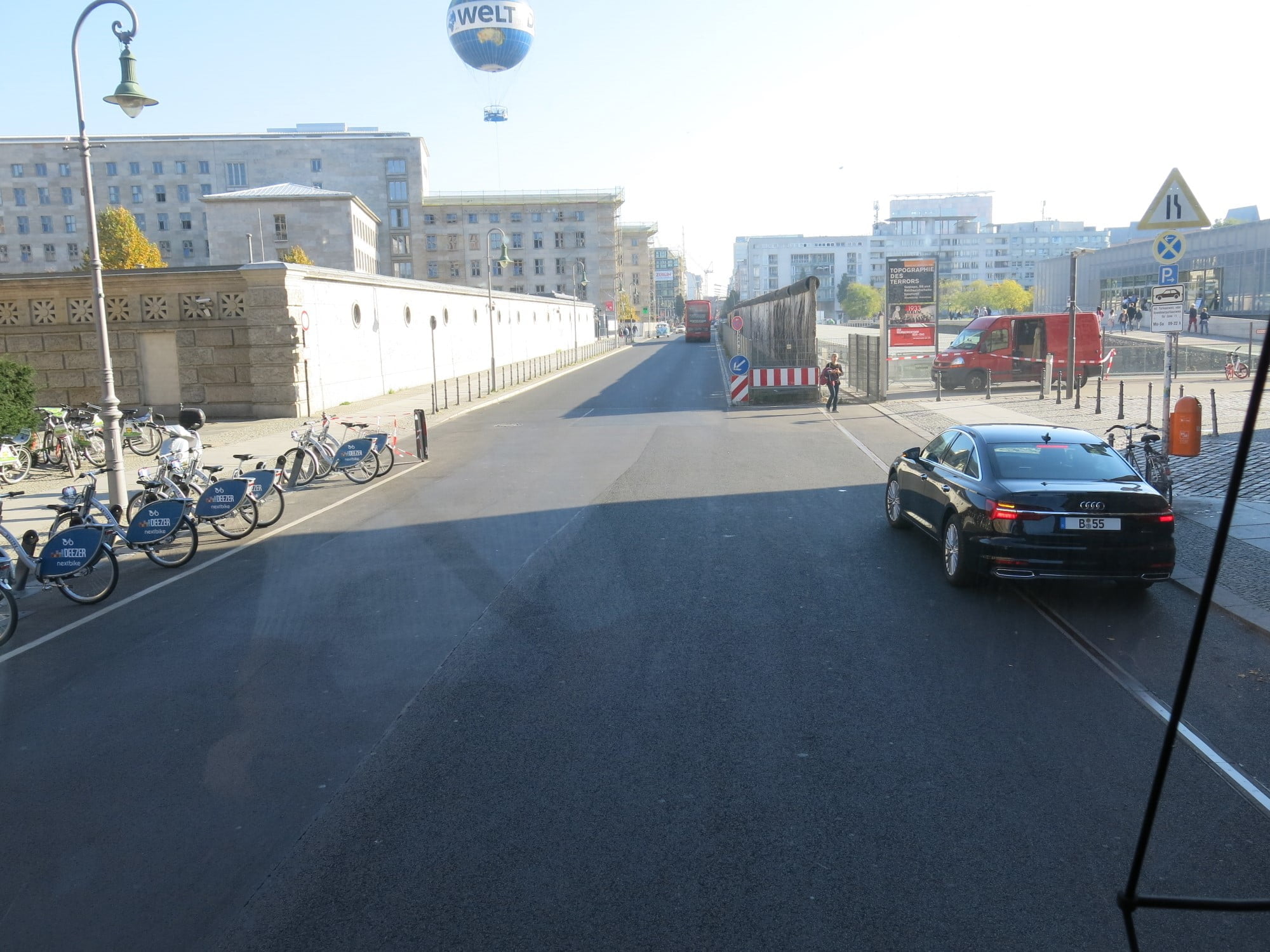 Muuri on suurimmalta osin purettu ja muurin paikka on merkitty tiehen viivana.