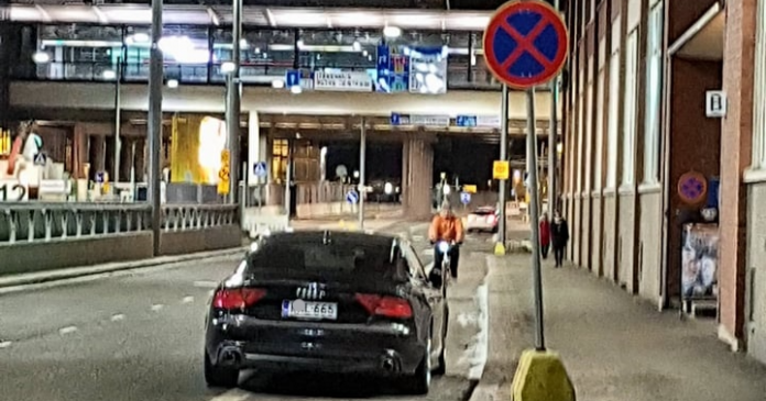 Audin kuljettaja oli varmaan ajatellut, että pysäköimällä pyörätiellä ei ole autoliikenteen jaloissa. Kuljettaja ei myöskään välittänyt liikennemerkistä, joka kieltää pysähtymisen kyseisellä alueella.