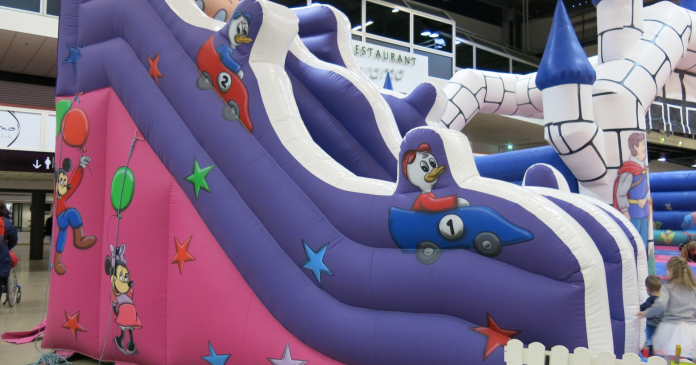Liukumäkeä koristaa Disneyn hahmot, muun muassa Mikki Hiiri, Minni, Tupu ja Hupu.