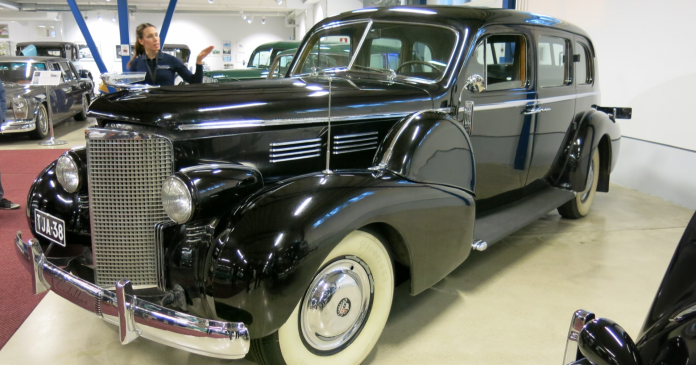 Woikosken Bertil Palmberg osti tämän kuvassa olevan 7 hengen Cadillacin pitkällä akselivälillä, välilasilla ja yksisuuntaisella kuljettajan sisäpuhelimella uutena vuonna 1938.