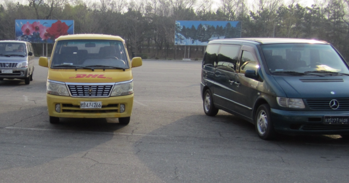 DHL:n auto oli Pjongjangin lentokentän parkkipaikalla kaiketikin viemässä lähetyksiä Pekingin lennolle tai odottamassa maahan saapuvia lähetyksiä.